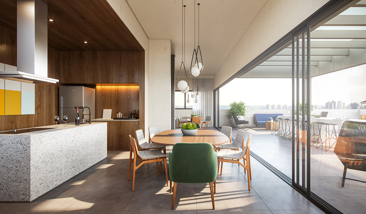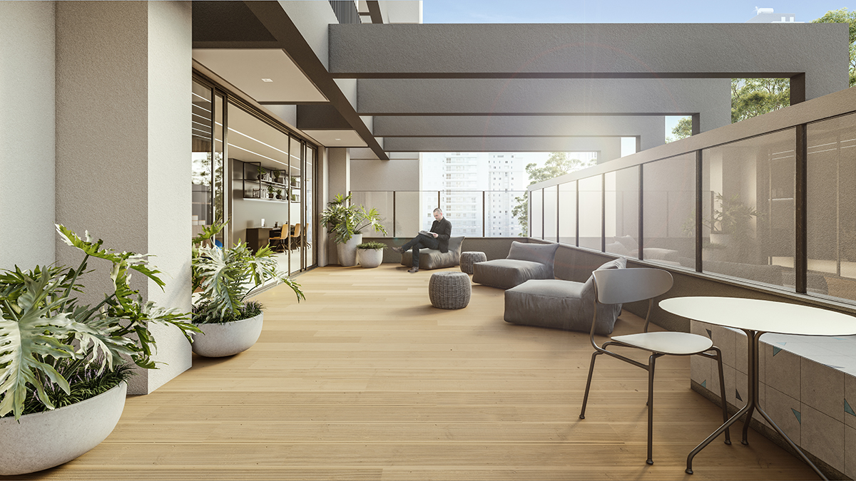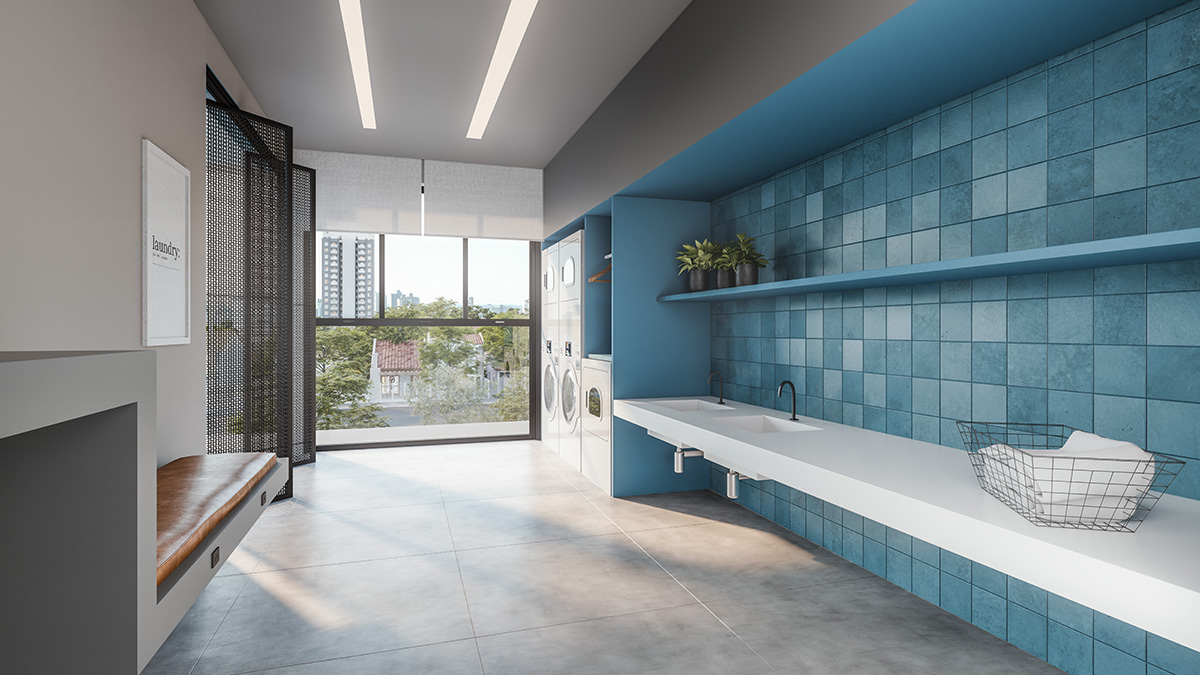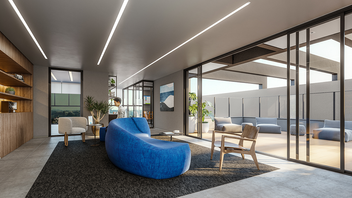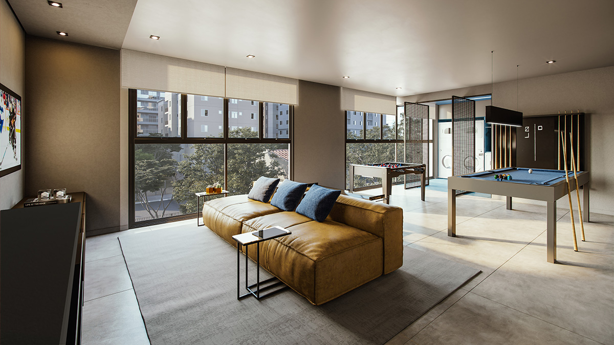 Destaque da área Comum: Amplo cooworking com e salas de reunião privativas, lounge e espaço de descompressão | Lavanderia coletiva integrada com Salão de Jogos | Ambientes com ar condicionado e wi-fi: coworking, Fitness Indoor, Lavanderia, Salão de Jogos, Brinquedoteca e Salão de Festas Indoor com ar condicionado | Controle de acesso por biometria ou senha nos Acessos e Áreas Comuns | Lockers para serviços de delivery | Recepção digital e projeto de segurança | Vaga para recarga de carro elétrico e bicicletário | Gerador de energia de conforto paras as Áreas Comuns